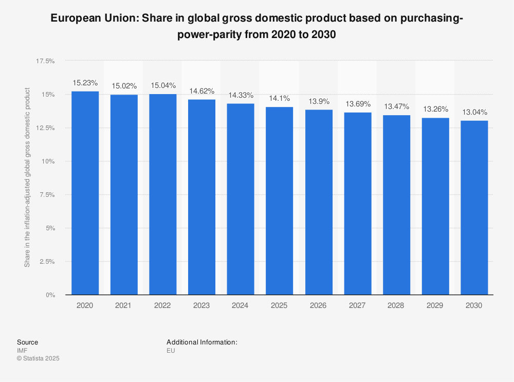 31.在整個2010年代,歐洲主要國家的經濟增長都非常疲弱,尤其是德國、法國、英國和義大利等「已開發」工業經濟體基本是停滯不前。對於歐盟及歐元區而言,直至2020年代末,前景仍被普遍預測為同樣的窘況。