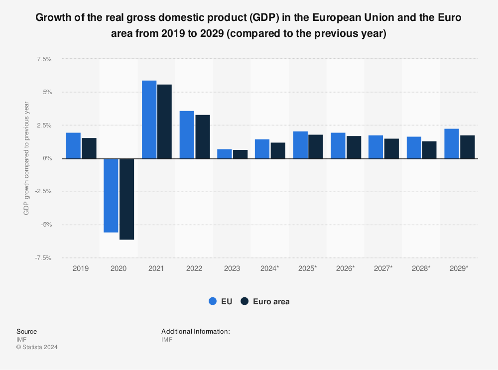 31.在整個2010年代,歐洲主要國家的經濟增長都非常疲弱,尤其是德國、法國、英國和義大利等「已開發」工業經濟體基本是停滯不前。對於歐盟及歐元區而言,直至2020年代末,前景仍被普遍預測為同樣的窘況。