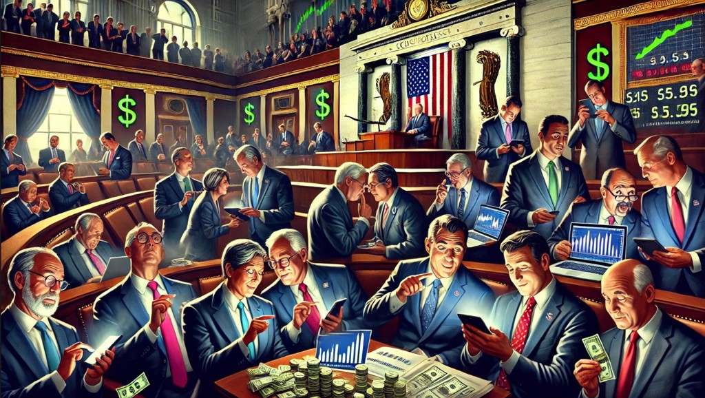 美國國會議員皆有大量投資,不僅令人懷疑有內線交易,更影響政府政策偏重服務資產階級的利益,而不是廣泛群眾的利益。(圖片來源:工商時報/AI生成)